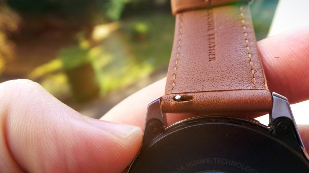 We may not see it enough in the photos, but the Huawei Watch harbors a speaker and a microphone via two slots located on the back of the watch.
